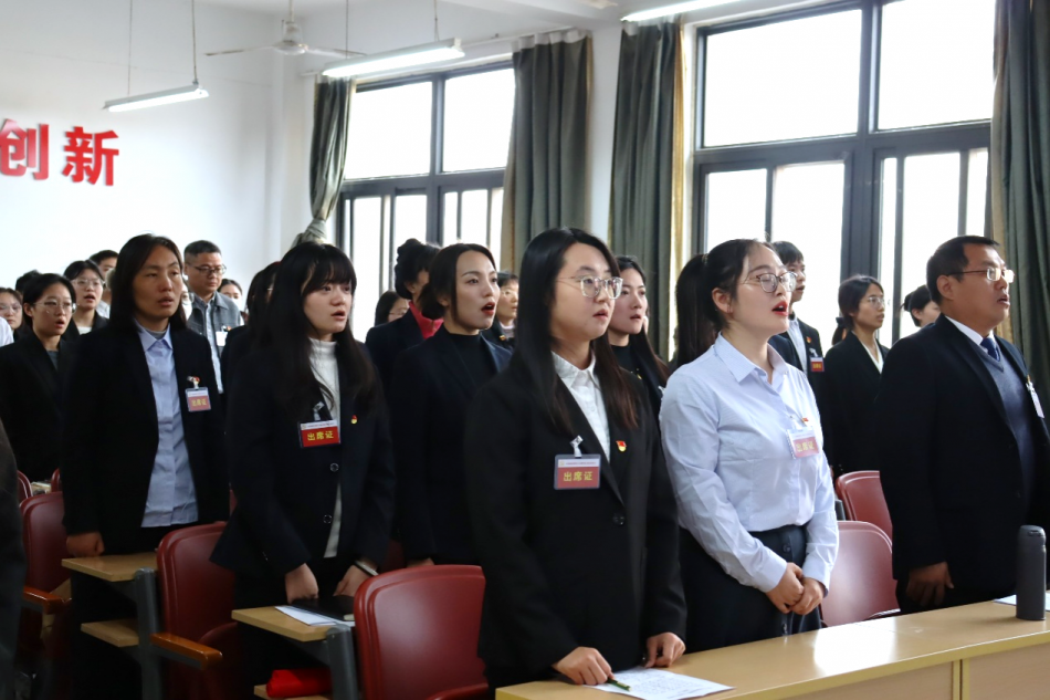 会议伊始,全体参会人员起身肃立,高唱国歌,以简洁庄重的方式拉开了大会的序幕。随后,魏亚南书记宣读了《中国共产党郑州财经学院437ccm·必赢国际总支部委员会党员大会的批复》,明确了此次大会召开的合法性与规范性,为换届工作的有序推进奠定了坚实基础。这也促使全体参会党员进一步统一思想、提高认识,深刻领会此次换届大会对于加强学院党组织建设、推动学院事业长远发展的重要意义。